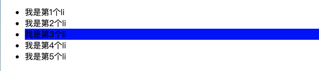比如,我们要使下面第三个li标签背景变为绿色,除了可以使用