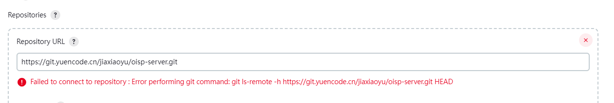 Failed to connect to repository : Error performing git command: git ls-remote -h https://git.yuencode.cn/jiaxiaoyu/jenkins-springboot.git HEAD,则是没有git环境。