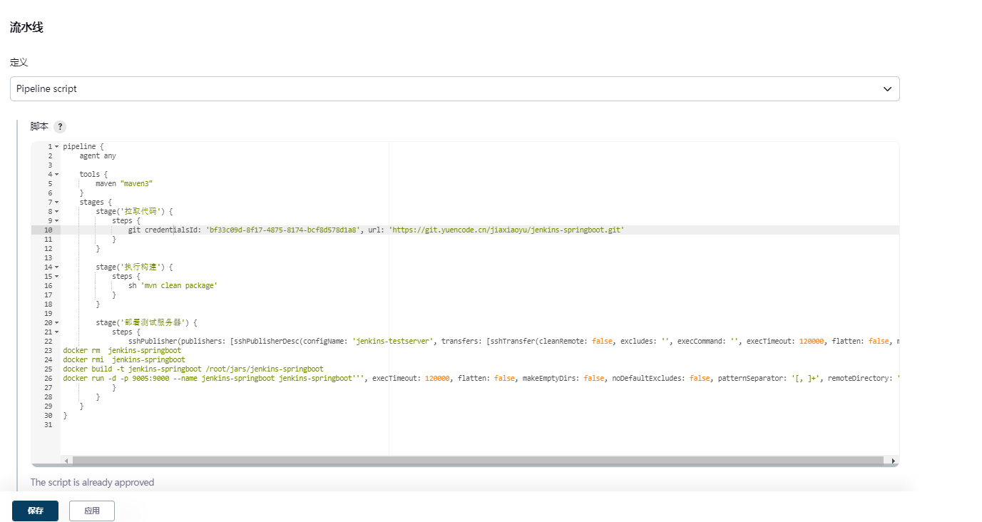 填入流水线脚本