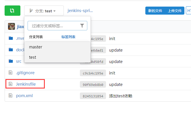 在git仓库中提交Jenkinsfile文件,通过控制不同分支上Jenkinsfile文件内容的不同,而实现多分支构建。